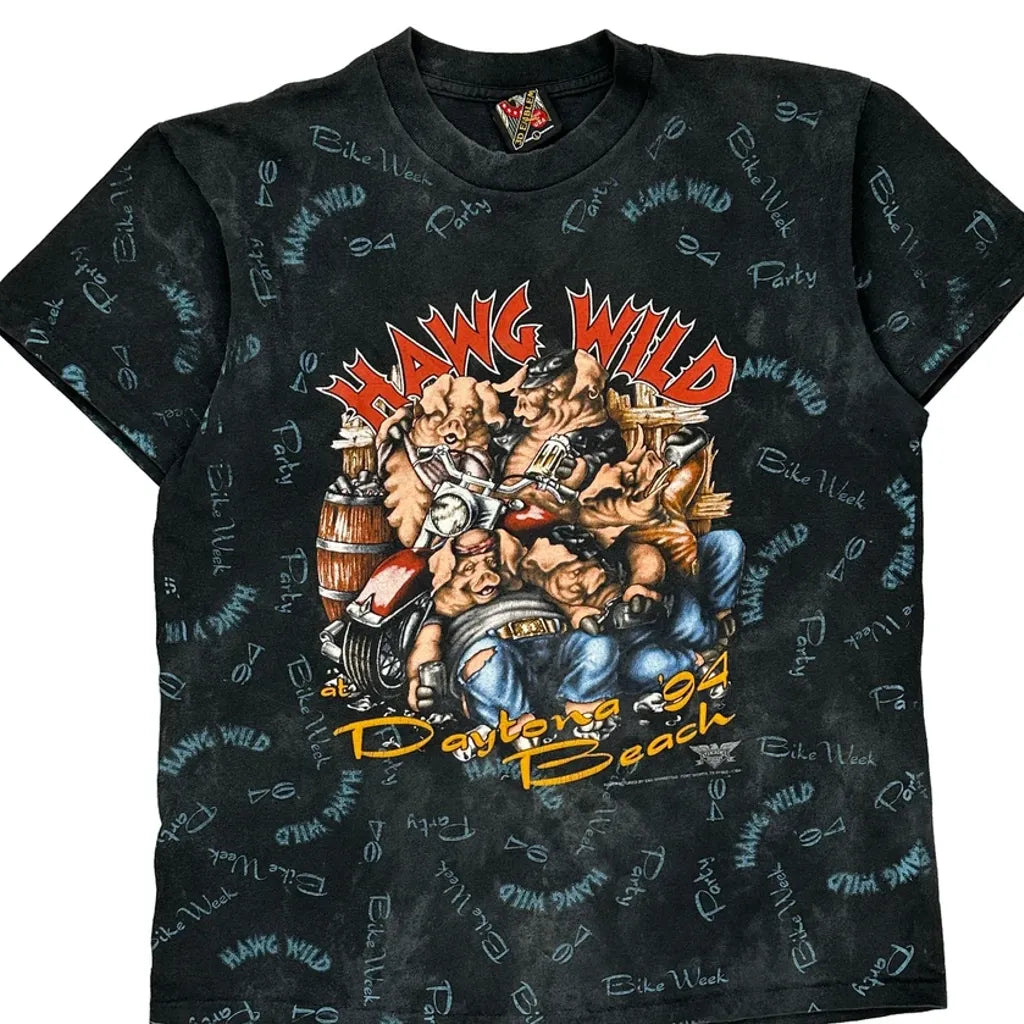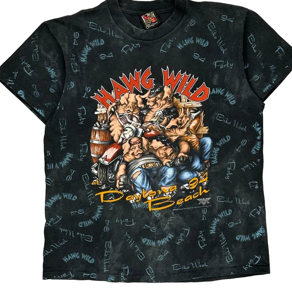 1994 Daytona Bike Week Hawg Wild 3D Emblem Graphic T-Shirt - Large Black Cotton