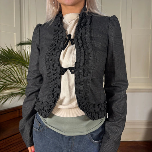 Sisley Checked Blazer - Small Grey Cotton Blend